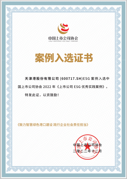 2022年12月,公司入選中國(guó)上市公司協(xié)會(huì)2022年《上市公司ESG優(yōu)秀實(shí)踐案例》